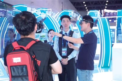 现场观众体验“AI+农业”科技企业开发的智能眼镜。