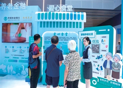 数贸会现场,农行浙江杭州分行工作人员为“年长客户”介绍浙江省养老服务“爱心卡”政策。