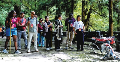 墨西哥新莱昂环境秘书处代表佩雷斯被天目山的“天地空一体化监测平台”吸引:“无人机巡检、定位项圈监测,这些数字技术能帮我们更好地保护森林生态,我要把图册和经验带回去。”
