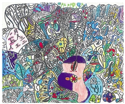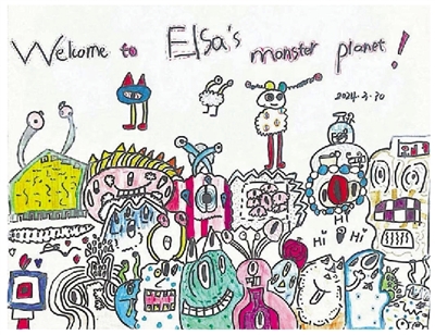 我没有专业学过画画,画上的东西都是我自己想象出来的。妈妈平时带我刷展时,我脑海里就住着这些怪兽了。我会自己在家里听着音乐,用丙烯马克笔把它们都画出来。也许它们不是最好看的,可是一定是最独特的,也是唯一的,是开心的、是生气的……就和我一样,是一个丰富多彩的自己。