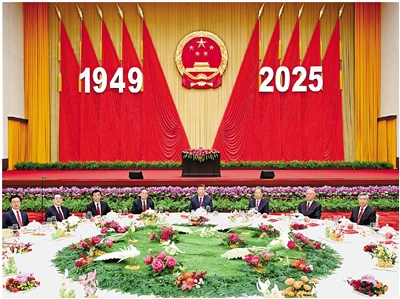 9月30日晚,庆祝中华人民共和国成立76周年招待会在北京人民大会堂举行。中共中央总书记、国家主席、中央军委主席习近平出席招待会并发表重要讲话。 新华社记者 燕雁 摄