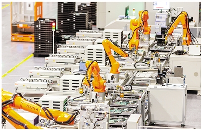 随着机械臂的快速转动,细小零部件被快速抓取、精准组合,完成组装的服务器源源不断地从生产线上运送出来……走进新华三未来工厂,很容易被眼前这条全球领先的服务器主板智能生产线吸引。