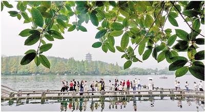 国庆中秋假期,杭城各地桂开枝头、清香四溢,市民游客纷至沓来,感受金秋十月之美,欢享假日休闲时光。 记者 李忠 摄