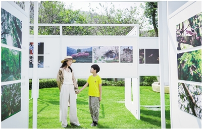 和家园南社区的大草坪上,一场特殊的自然生态影像展吸引了众多居民驻足欣赏。