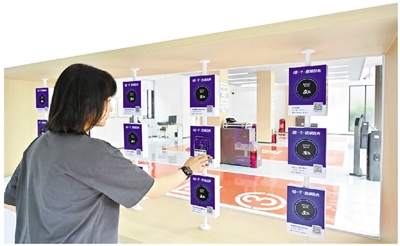 在驿站办事的居民正在使用“碰一下”服务。