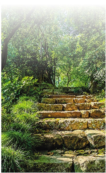 太阳西沉,清风送爽,夕阳将山路划出道道金线,人行其中,如行在迷宫。