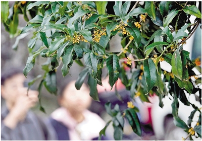 昨天是杭州入秋第四天,西湖景区里不少“隐忍”已久的桂花在寒风中悄然开放,清香四溢。今夏“超期服役”的高温天气将杭城桂花花期推迟了半个多月,随着近期气温大幅下降,桂花开放条件已基本满足。据专家预测,未来一周左右将迎来一波桂花集中盛开期,“满城尽飘桂花香”的日子即将到来。记者 李忠 摄