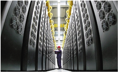 工作人员在贵安超算中心数据机房内工作(2024年8月29日摄)。新华社发