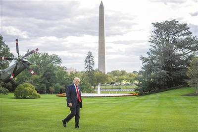 近日,在华盛顿,美国总统特朗普乘直升机返回白宫。 新华社记者 胡友松 摄