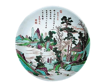 烧制清康熙五彩“雷峰夕照”盘的“木石居”,是康熙朝的典型民窑作坊,此器体现了当时民窑较高的制作水准,是研究康熙时期民窑瓷器生产工艺和艺术风格的重要实物资料。