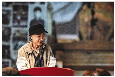 周泉虎在“生前告别会”上发言。 曹梦琪 摄