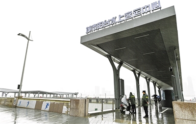 顺着指示继续骑行约200米,便抵达码头。码头处设有安检闸口,现场工作人员告诉记者,闸口实行公交码验证入闸,工作人员也会手持安检设备进行安检。这意味着,如果想更快更顺地过闸乘船,需要手机里备好公交码并提前打开。