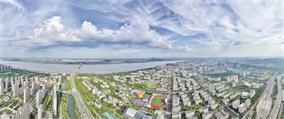 眺望钱塘“一带两城”。 记者 李忠 摄