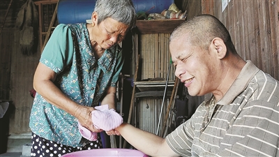 40多年前,董六娟嫁入桂家时,小叔子桂永祥还是个十几岁的少年。这个家中最小的孩子,因脑瘫导致一级肢残,生活完全不能自理。随着婆婆年事渐高,董六娟便时常搭把手帮忙照料。