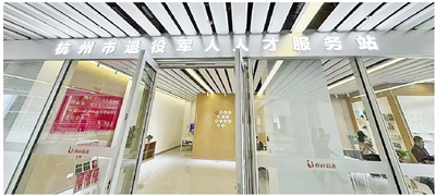 “在这里,我们整理了杭州市退役军人就业创业相关政策手册方便查阅,并设置了职业指导工作室,未来还将联动专家及志愿者,为来杭退役军人提供高质量的服务。”在位于杭州西站一楼的杭州市退役军人人才服务站内,余杭区退役军人事务局副局长程江峰介绍了“老兵来杭第一站”的相关配置。