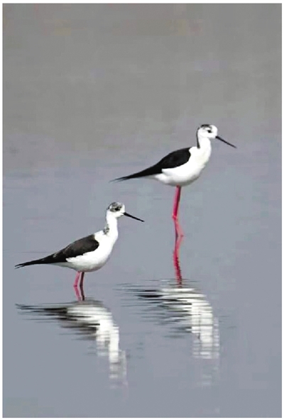 被誉为鸟界“超模”的黑翅长脚鹬在澉浦湾。 顾月良 摄