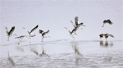 这两天,钱塘大湾区湿地公园迎来一群“贵客”——东方白鹳,令在此观鸟的摄影爱好者们惊喜不已。东方白鹳是鹳形目鹳科鹳属的大型涉禽,长腿坚喙,体态优美,全身白羽,而宽大翅膀上的飞羽为黑色,飞行时宛若“空中的大熊猫”,辨识度颇高。东方白鹳繁殖分布区域狭窄,数量稀少,目前已处于全球濒危状态,在我国被列入一级重点保护野生动物名录。 通讯员 张祥荣 摄 记者 李忠 文