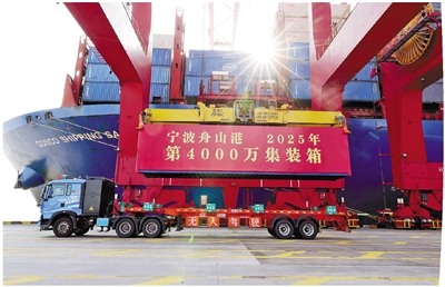 4000万箱,是宁波舟山港高质量发展的铿锵之音。2008年,宁波舟山港箱量首破1000万箱,实现首个“千万箱级”跨越。
