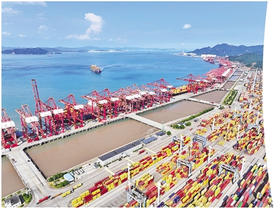 对外,织密全球网络。目前,宁波舟山港有超过300条集装箱航线连接200多个国家和地区的600多个港口,每天迎来送往货轮近300艘次,港口连通性指数排名全球第二。特别是宁波舟山港至德国威廉港“中欧快航”的顺利开通,航程耗时仅26天,较传统方式缩短10余天。从宁波舟山港首航直达英国弗利克斯托港的“中欧北极快航”,则进一步缩短了中国与欧洲主要港口的航运时间,成为长三角地区到欧洲最快的直达航线,为中欧贸易搭建起更加便捷高效的海上新通道。此外,宁波舟山港通过在新加坡、阿联酋、德国、越南等国家设立子公司或办事处,以“海外仓”延伸服务链条,并建成投用我省首个跨境电商物流产业园项目,让“中国制造”与世界市场高效对接。