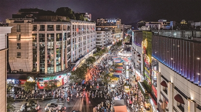赛事与特色活动成为引流聚气的新载体。今年夏季,“楼BA”篮球赛每周在武林广场激情上演,商务社区楼宇、园区企业队伍角逐“武林球王”。“武林吨吨节”人潮涌动,周边商场借势引流,延续消费热度。赛事期间,武林广场日均人流量达3万人次,较平时增长200%以上,拉动商圈销售额增长12.5%。同时,拱墅实施“光影赋能”亮灯工程,优化交通组织,增强人流互通,推动商圈有机更新。