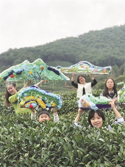 这堂美育课,在转塘街道外桐坞村的茶山上进行。一幅1∶1复制的《千里江山图》长卷在孩子们眼前徐徐展开,画中的苍翠峰峦与身旁的连绵茶山相映成趣,化作跨越时空的奇妙对话,中国美术学院特聘教师李丝将画作的典故与意境娓娓道来,台下的学生听得入神。