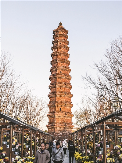 行走的过程,总是在反常识中学到新常识。比如开封铁塔不是铁做的,它是用特制的褐色琉璃砖砌筑而成,通体镶嵌着红褐色的琉璃瓦和琉璃砖。在阳光下远望时,这些琉璃砖的颜色酷似生了铁锈的铁色,显得庄严沉稳。