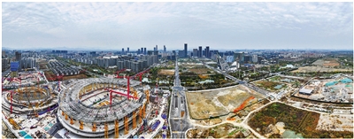近日,从空中俯瞰杭州未来科技城核心区,在占地面积2.84平方公里的区块内,余杭国际体育中心、杭州未来国际演艺中心等20余个政府投资项目如雨后春笋般破土而出、拔地而起,未科阿里中心、字节跳动华东中心、vivo全球AI研发中心等众多高能级科创平台纷纷入驻,一条兼具未来感、国际范、创新味与年轻化特质的世界级城市中轴线正在加速形成。 记者 李忠 摄