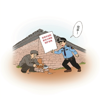 经杭州市人大常委会表决通过、浙江省人大常委会批准,《杭州市富阳新登古城墙保护条例》将于2026年1月1日起正式施行,这也是全国县域城墙保护首部法规。该法规着眼于地域实际,以法治方式从根本上筑牢了文物保护的基础,为解决保护中的实际问题提供了“杭州方案”。 漫画 郭尔