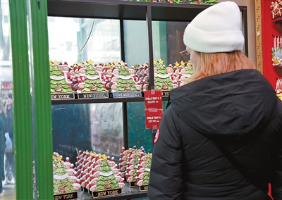 位于曼哈顿中城布莱恩特公园的节日季露天市场是纽约市冬日一景,很多人在此选购小商品。记者看到,“圣诞工坊”礼品店所售手掌大圣诞雪人摆件税前价超过30美元,30厘米高自由女神像税前价接近50美元,一对小小的“友谊鸽”税前价接近45美元。这些商品大多为树脂材料制作,售价之高让记者吃惊。大多数消费者在选购时也颇显犹豫,经过反复思量和对比才决定是否购买。