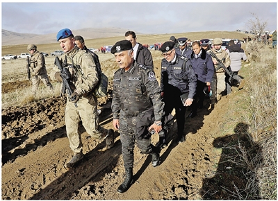 12月24日,利比亚军事代表团抵达在土耳其安卡拉省哈伊马纳区一座村庄附近的坠机现场。 新华社发(穆斯塔法·卡亚 摄)