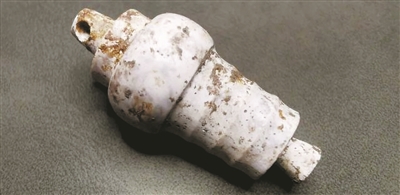 其二是一件壶形玉坠。该壶形玉坠出土时位于墓主胸前位置,造型十分独特。赵晔说,这件壶形玉坠的造型模仿了嘉兴地区良渚时期常见的陶质双鼻壶,而且是倒置的样子。为什么会做成这样?它反映了当时什么样的社会变化?这些都值得深入探究。