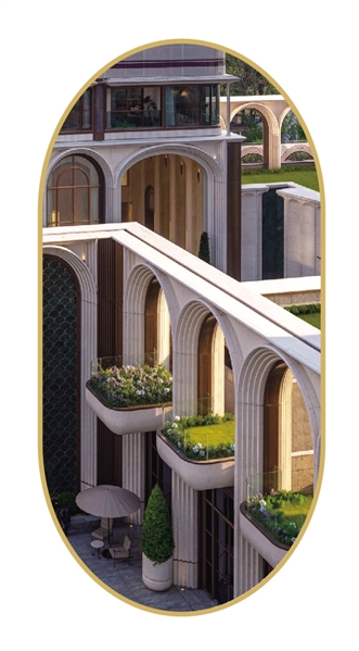 大家房产的咏印明庐,呈现出的建筑之美令人耳目一新。这是大家房产以超越时代的人本精神开创的全新产品序列“庐系”。它的外立面借鉴了斯卡帕叠级手法处理,并打造了近12米高的意式拱券阵列组合。