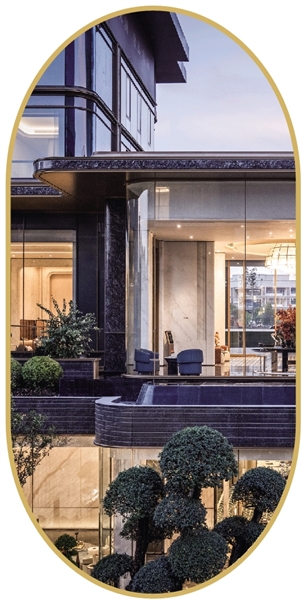 在义乌凤起潮鸣,高层建筑立面汲取凤翎元素,凝练出“东方之翎”的意象。大面积玻璃幕墙搭配银色和香槟色铝板,超高窗墙比+弧形圆角+转角无柱设计,重塑了义乌的美学地标。约6000平方米的泛会所和下沉水院,涵盖了私宴厅、影音室、室内恒温泳池、健身房等十六大功能空间。