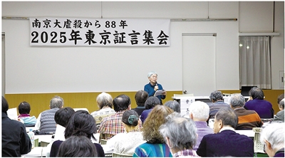 日前,日本“No More南京之会”代表在东京举办的南京大屠杀证言集会上发言,揭露侵华日军当年犯下的罪行,推动日本社会正视侵略历史。 新华社记者 李子越 摄