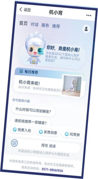 “宝宝6个月该加什么辅食?发育指标正常吗?以前总上网查,越查越焦虑。现在打开‘杭小育’,就能得到专业解答,太省心了!”新手妈妈陶女士对“杭小育”赞不绝口。