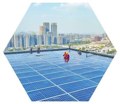 国网杭州供电公司员工巡检杭州市公共机构最大光伏项目设备,助力绿色低碳发展。张德峰 摄