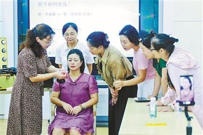 学员们体验古韵美妆课。拱墅区社区学院供图