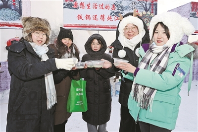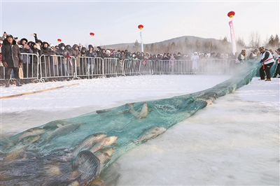 12月30日,有“神州北极”之称的黑龙江省漠河市举行“冷水鱼·冬捕季”系列活动,展现当地独特的风土人情。图为游人在冬捕活动现场品尝鱼汤。
