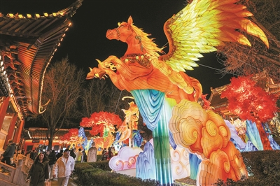 12月30日,市民游客在南京市秦淮区夫子庙大成殿景点参观各种灯彩。2026新年即将到来,夫子庙大成殿景点的灯彩灯组陆续点亮,为市民游客献上视觉盛宴。 新华社记者 李博 摄