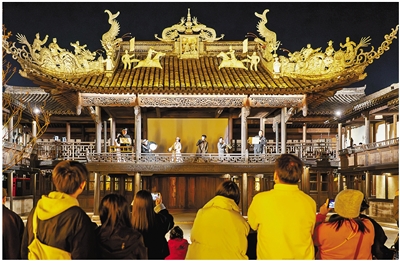盐官古城内《潮乐之争》沉浸式实景游戏将惊喜上演,让游客化身民国报人,在趣味体验中穿行于古城街巷。大家可以一边探索盐官古城不为人知的奇闻轶事,一边在互动解谜中感受古城的历史肌理与人文底蕴。戏台区域和后街的万市大集,一碗热腾腾的缸肉暖锅驱散冬日寒意,琳琅满目的特色好物与温柔治愈的现场弹唱相映成趣,让游客在烟火气中品味传统年味与现代生活的交融之美。