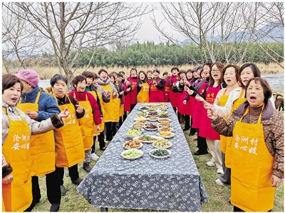 常安镇沧洲村女乡厨们在壶源溪边比拼厨艺,推出春季时令套餐。常安镇供图