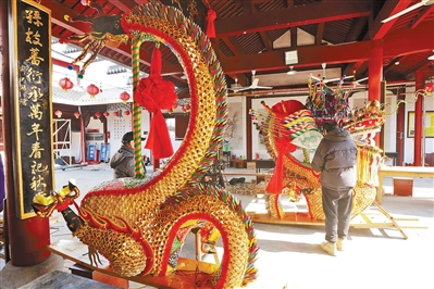 1月9日,在萧山区河上镇溪头村的聚敬堂里,艺人正专注地为一条全新制作的河上板龙进行最后的修饰。1月10日,这条河上龙灯胜会的主角——板龙将发运进京,亮相中国非物质文化遗产馆。河上龙灯胜会流传于萧山区河上镇一带,已有上千年历史。2014年,河上龙灯胜会被列入第四批国家级非物质文化遗产代表性项目名录。