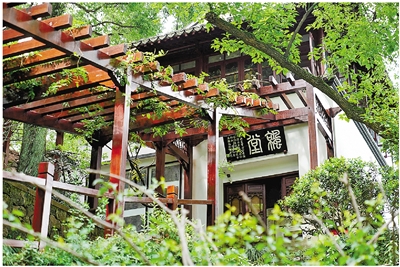 循着石径向西,径旁竹树渐密,境界转幽,上行不远,即是小盘谷。此地真可谓“山光水波,萦映夫谷”。光绪三年(1877),江西布政使李桓(字黼堂),因喜爱孤山西泠一带的山水,在六一泉旁建屋居住。诗僧笠云曾在此游历栖息,将此地命名曰“小盘谷”。后来,屋室颓圮。直至1911年,李黼堂的孙子李庸,因李家祖孙几代人倾慕风雅,对于创立西泠印社尽心竭力,于是将小盘谷毗邻西泠印社东侧的这一片土地,正式捐赠于印社,开辟为社中一区幽境,并撰文刻石,记录此事始末。此一方天地,由此熏陶着后人。最早提倡创社的金石篆刻家中最年轻的唐醉石,便是其中之一。他幼年随外祖父李辅耀定居杭州,正是在这样的氛围中研习金石碑版,并为其题写了“斯文奥”隶书匾额。