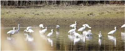 白琵鹭集聚钱塘湾