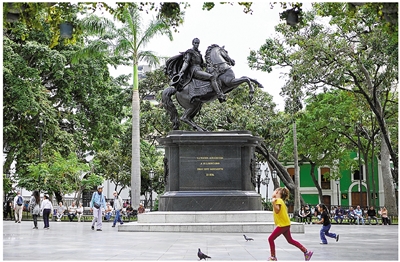 这是1月12日在委内瑞拉首都加拉加斯拍摄的玻利瓦尔广场。