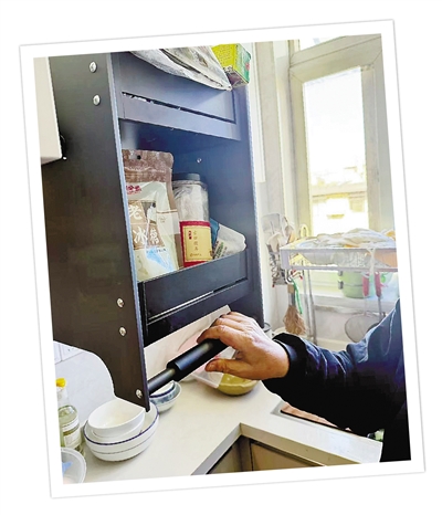 杨如春家的厨房吊柜安装了拉篮方便物品拿取。温欣欣 摄