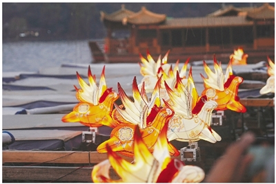 钱王祠码头,暖黄的马灯光影随着水波轻轻摇曳,西湖上新添了一抹温暖的年味儿——1月23日傍晚,“马灯福气船”正式亮相西湖,首批登上福气船的游客兴奋地表示:“开年就‘中头彩’,今年一定有好运!”传统的手划船装点上寓意吉祥的马灯,在夜色湖光中相映成趣,拉开了2026“宋”福杭州年的序幕。