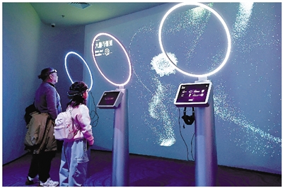 图为1月27日,参观者在上海科技馆“神奇的我”展区内体验“大脑与情绪”体感游戏。