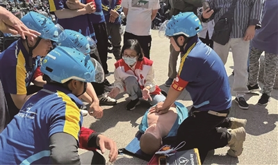 新就业群体志愿服务队参加西湖区的应急救援培训。