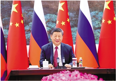 习近平表示,开年以来,国际形势愈发动荡。作为负责任大国和联合国安理会常任理事国,中俄两国有义务推动国际社会坚守公平正义,坚定捍卫二战胜利成果,坚决维护以联合国为核心的国际体系和国际法基本准则,携手维护全球战略稳定。